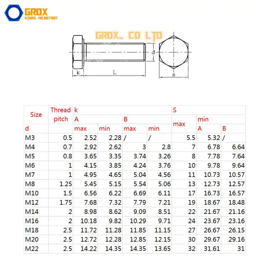 A2 70 Stainless Steel Hex Head Bolt A2 70 Bolt Torque Size Chart